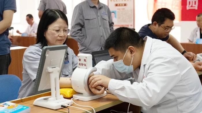 上午9时许,各义诊点已有序排起候诊队伍。“平时工作忙,稍微有点不舒服一般也忍着,这次公司把专家请到厂区来,真是太贴心了。”前来就诊的员工纷纷点赞。中医诊疗区人气高涨,医师通过“望闻问切”为员工量身定制个性化调理方案;针灸治疗区排起长队,肩颈腰腿等常见问题现场接受针灸调理;健康咨询台前,护士团队耐心讲解慢性病预防知识,为大家测量血压并发放健康手册。